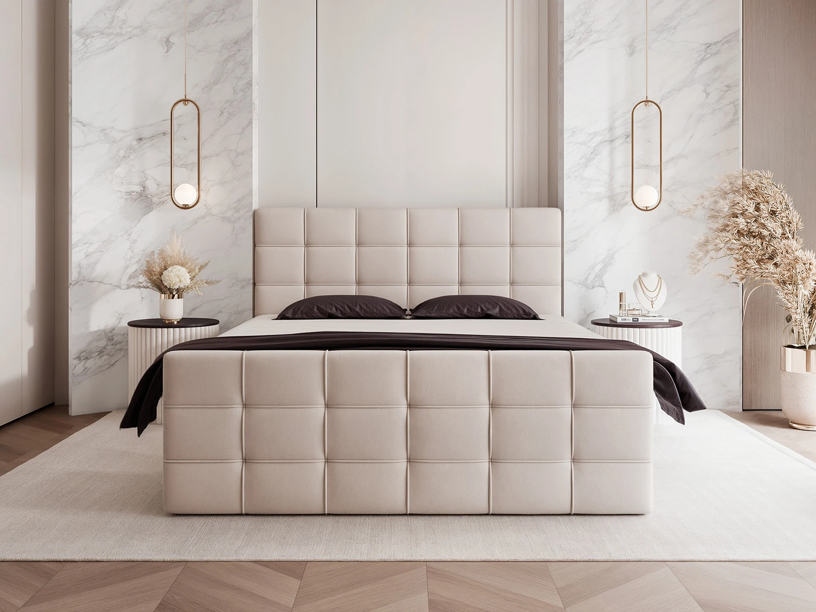Łóżko PAROS to połączenie wyjątkowego designu, funkcjonalności i komfortu, które odmieni każdą sypialnię. Charakterystyczne, geometryczne pikowania na wysokim zagłówku i froncie łóżka nadają mu nowoczesnego, a jednocześnie eleganckiego wyglądu. To idealny wybór dla osób ceniących stylowe wnętrza i wygodę codziennego użytkowania.