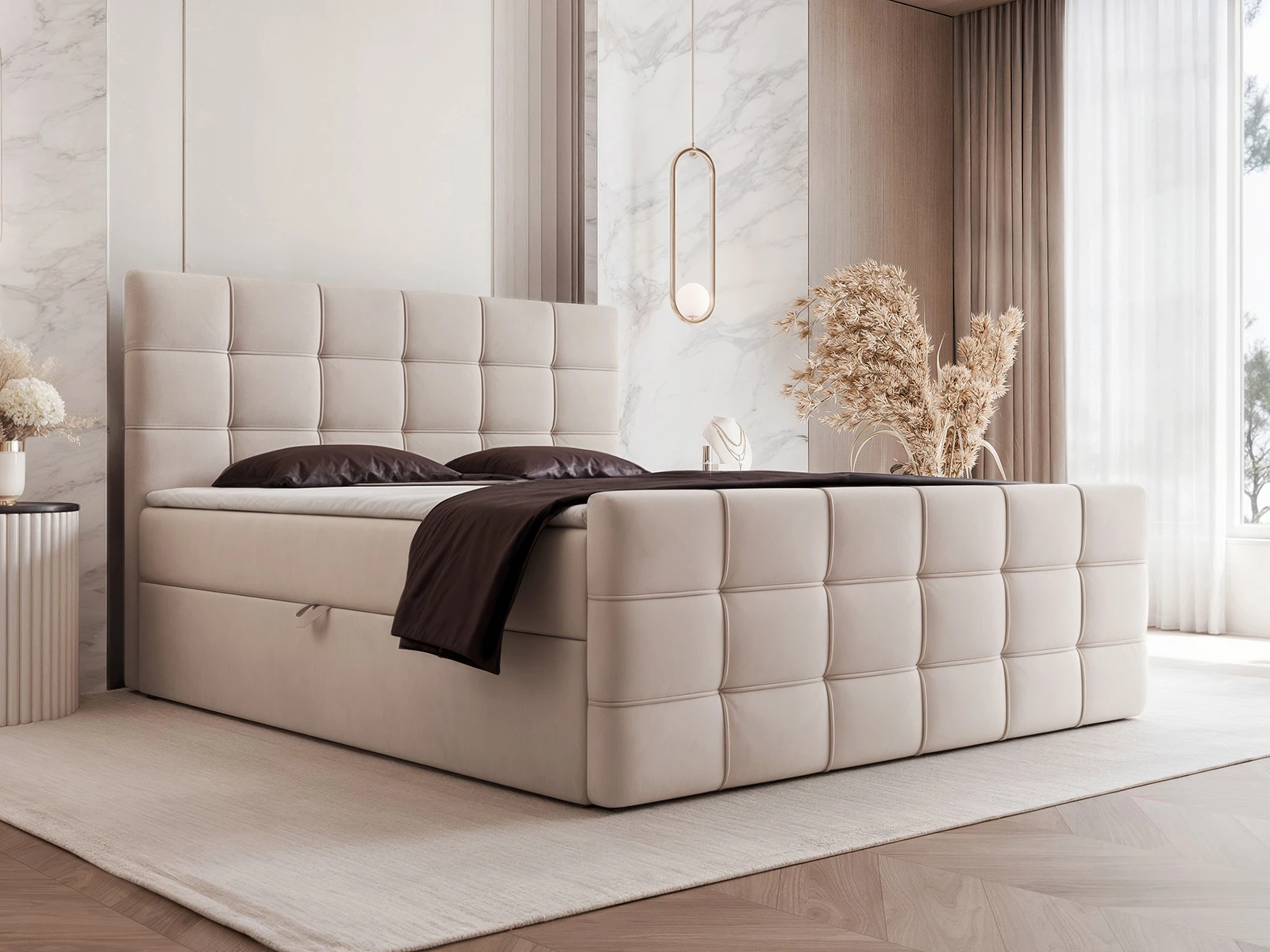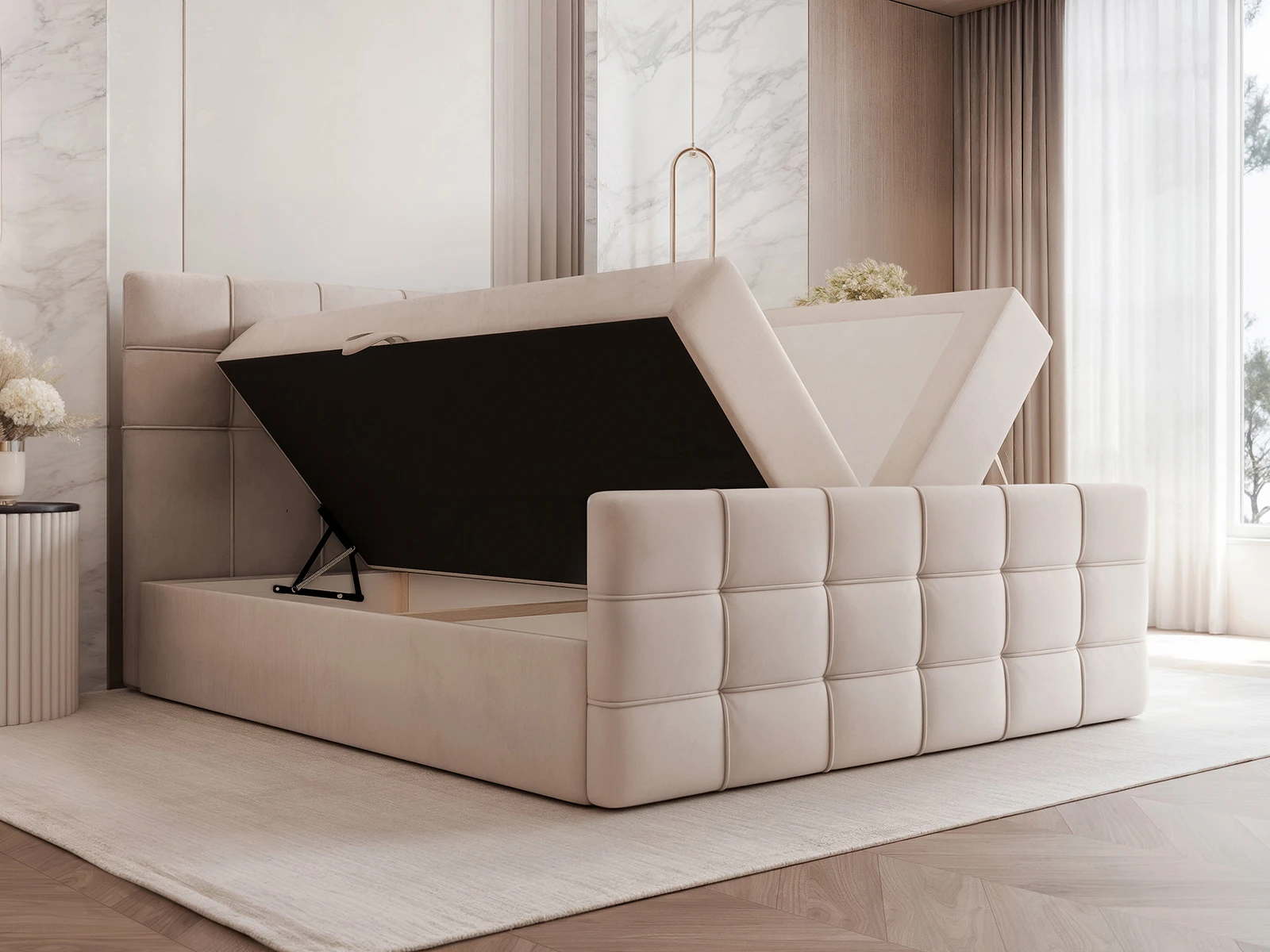 Model PAROS został wyposażony w praktyczny pojemnik na pościel, który pozwala na wygodne przechowywanie kołder, poduszek czy sezonowych tekstyliów. To doskonałe rozwiązanie do sypialni, w których liczy się maksymalne wykorzystanie przestrzeni.