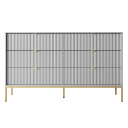 Korpus ławy LAMELO został wykonany z pyty laminowanej, ryflowane fronty z płyty MDF. Cała konstrukcję wzmacnia stalowy stelaż malowany proszkowo na kolor czarny.