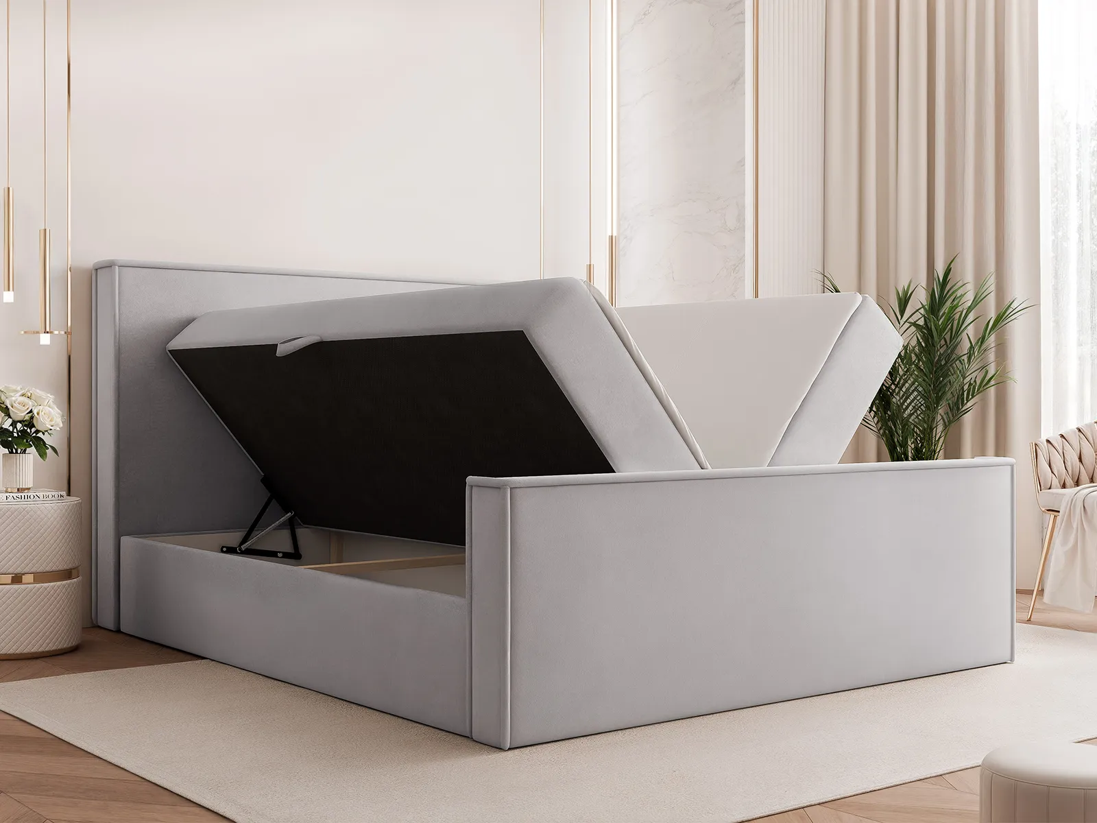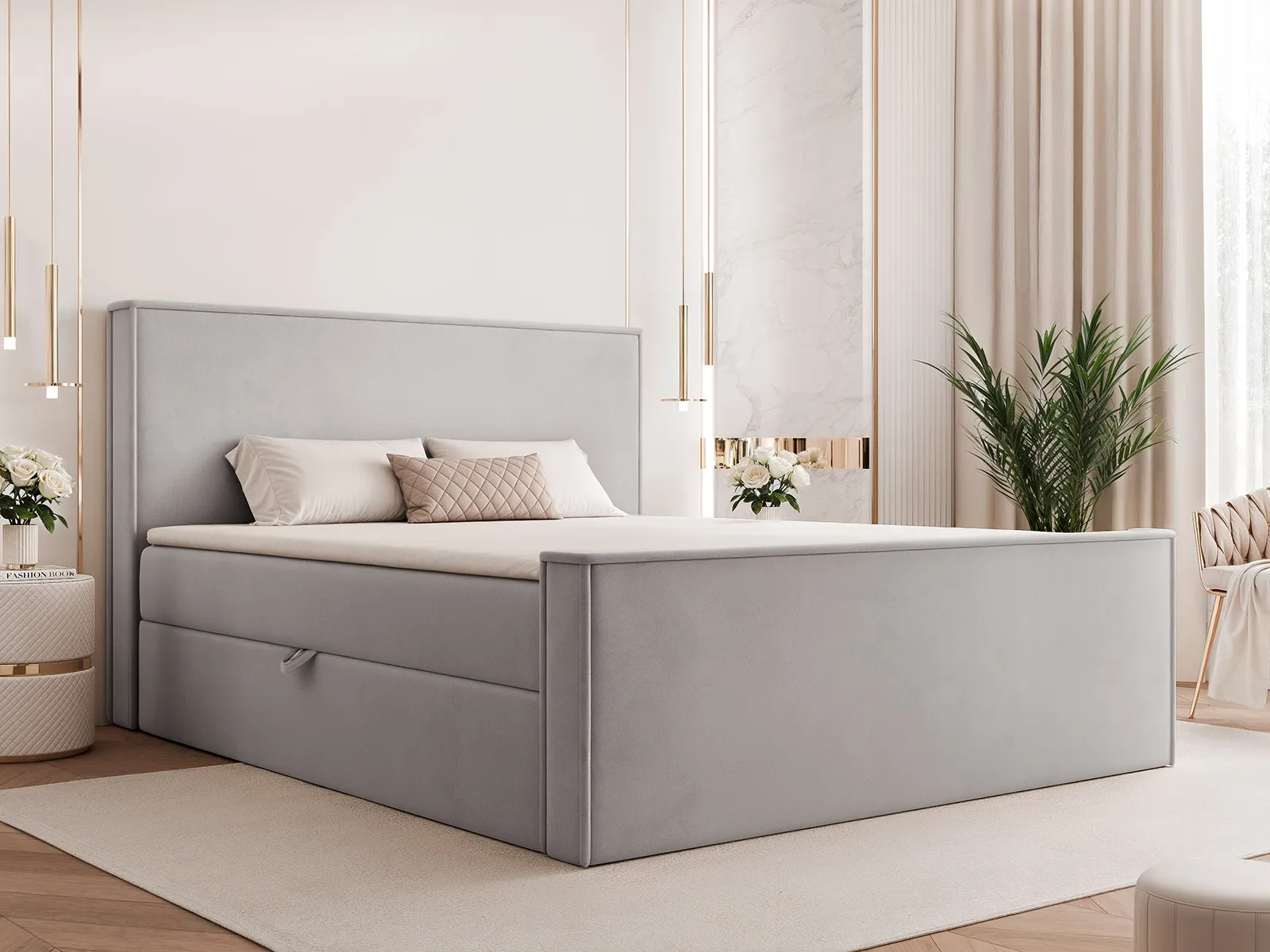 Łóżko Polio to połączenie nowoczesnej elegancji i funkcjonalności, które idealnie sprawdzi się w stylowej sypialni. Charakterystyczne pionowe przeszycia na zagłówku i ramie nadają bryle subtelnej lekkości oraz luksusowego wykończenia. Jasna, neutralna kolorystyka sprawia, że model doskonale komponuje się zarówno z aranżacjami modern classic, glamour, jak i minimalistycznymi wnętrzami.