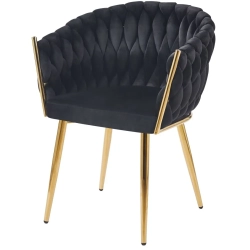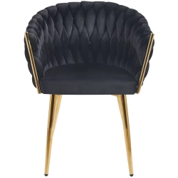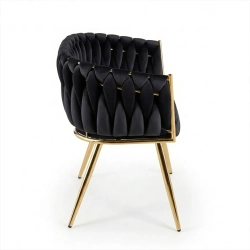 MODNE KRZESŁO PLECIONE ROSE CZARNY VELVET NA ZŁOTYCH NOGACH