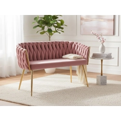 ELEGANCKA SOFA DO SALONU LUB GABINETU ROSE RÓŻOWY VELVET ZŁOTE METALOWE NOGI