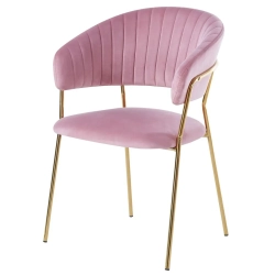 JADALNIANE KRZESŁO FLORI PUDROWY RÓŻ VELVET NA ZŁOTYCH NOGACH