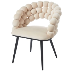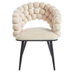 KRZESŁO Z KULKAMI DO JADALNI NOVA BEŻOWE VELVET NA CZARNYCH NOGACH