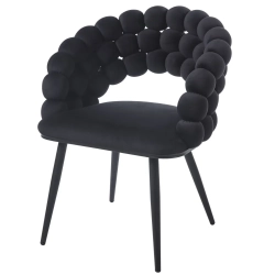 KRZESŁO Z KULKAMI DO JADALNI NOVA CZARNE VELVET NA CZARNYCH NOGACH