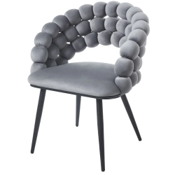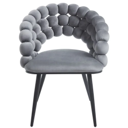 KRZESŁO Z KULKAMI DO JADALNI NOVA SZARE VELVET NA CZARNYCH NOGACH