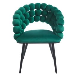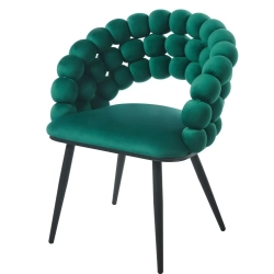 KRZESŁO Z KULKAMI DO JADALNI NOVA ZIELONE VELVET NA CZARNYCH NOGACH