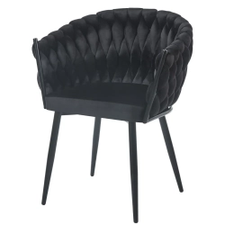 MODNE KRZESŁO PLECIONE ROSE CZARNY VELVET NA CZARNYCH NOGACH