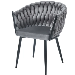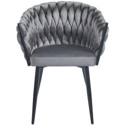 MODNE KRZESŁO PLECIONE ROSE SZARY VELVET NA CZARNYCH NOGACH