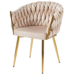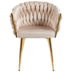 MODNE KRZESŁO PLECIONE ROSE BEŻOWY VELVET NA ZŁOTYCH NOGACH