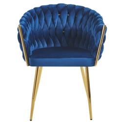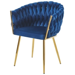 MODNE KRZESŁO PLECIONE ROSE GRANATOWY VELVET NA ZŁOTYCH NOGACH