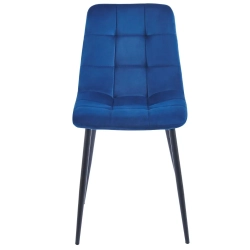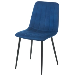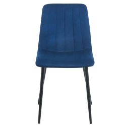 MAŁE KRZESŁO DO JADALNI ROTE Z PRZESZYCIAMI NIEBIESKIE VELVET NA CZARNYCH NOGACH