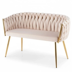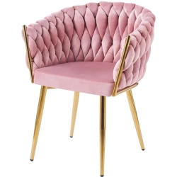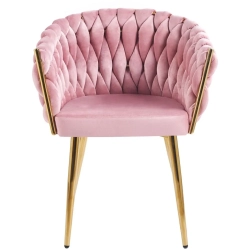 MODNE KRZESŁO PLECIONE ROSE PUDROWY RÓŻ VELVET NA ZŁOTYCH NOGACH