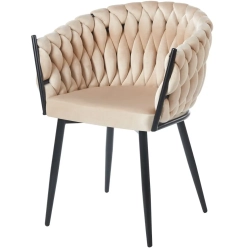 MODNE KRZESŁO PLECIONE ROSE BEŻOWY VELVET NA CZARNYCH NOGACH