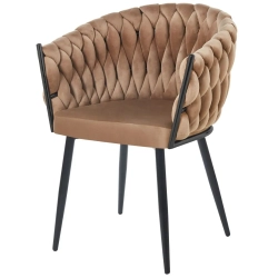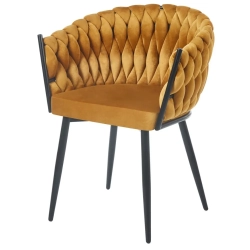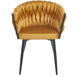 MODNE KRZESŁO PLECIONE ROSE MIODOWY VELVET NA CZARNYCH NOGACH