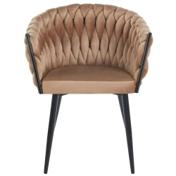 MODNE KRZESŁO PLECIONE ROSE CIEMNY BEŻ VELVET NA CZARNYCH NOGACH