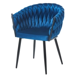 MODNE KRZESŁO PLECIONE ROSE GRANATOWY VELVET NA CZARNYCH NOGACH