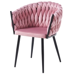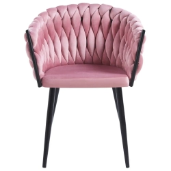 MODNE KRZESŁO PLECIONE ROSE PUDROWY RÓŻ VELVET NA CZARNYCH NOGACH