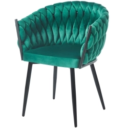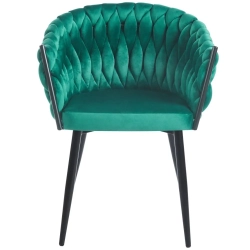 MODNE KRZESŁO PLECIONE ROSE ZIELONY VELVET NA CZARNYCH NOGACH