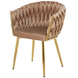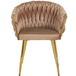 MODNE KRZESŁO PLECIONE ROSE CIEMNY BEŻ VELVET NA ZŁOTYCH NOGACH