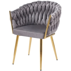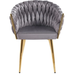 MODNE KRZESŁO PLECIONE ROSE SZARY VELVET NA ZŁOTYCH NOGACH