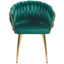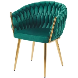MODNE KRZESŁO PLECIONE ROSE ZIELONY VELVET NA ZŁOTYCH NOGACH