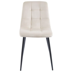 MAŁE KRZESŁO DO JADALNI ROTE Z PRZESZYCIAMI BEŻOWE VELVET NA CZARNYCH NOGACH