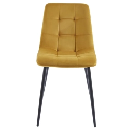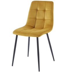 MAŁE KRZESŁO DO JADALNI ROTE Z PRZESZYCIAMI MIODOWE VELVET NA CZARNYCH NOGACH