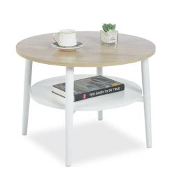 STYLOWY STOLIK OKRĄGŁY DO SALONU SAVA S BLAT DĄB SONOMA NOGI BIAŁE