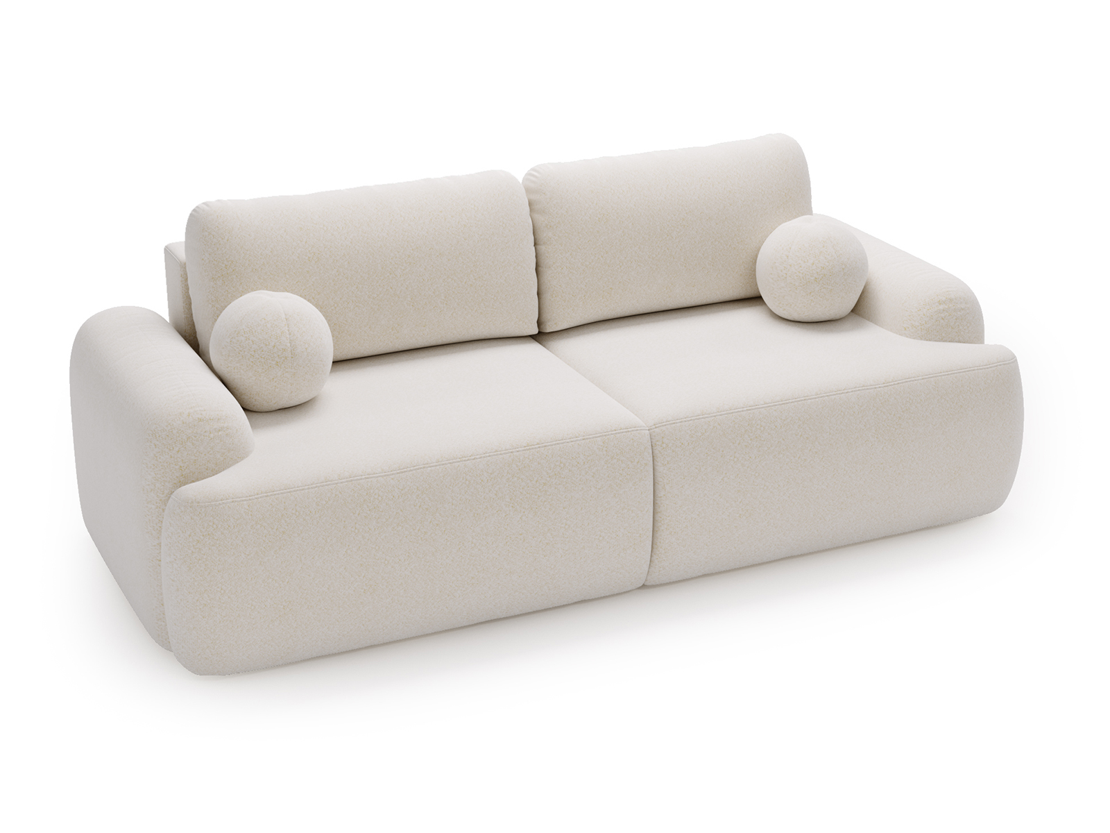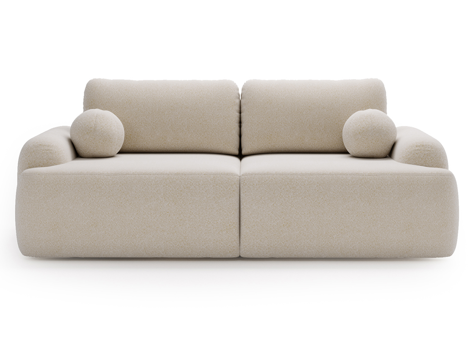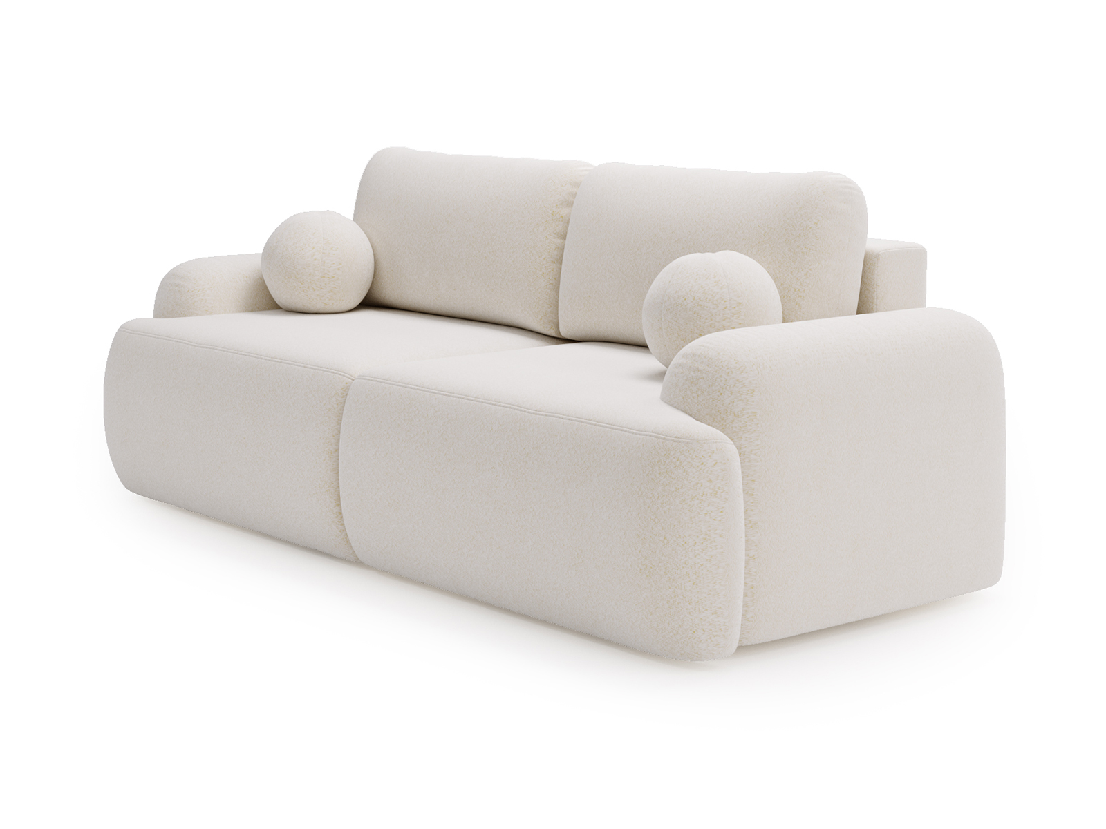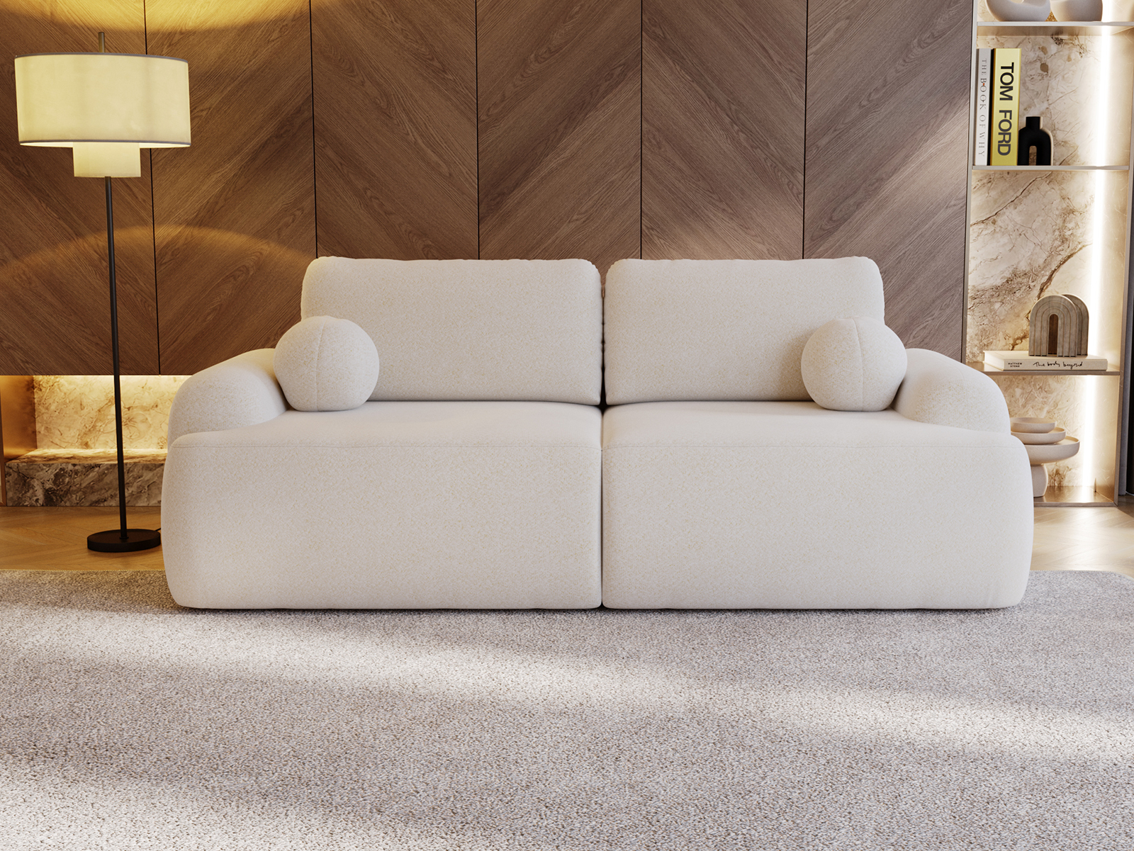 Obicie wykonano z tkaniny Lambi typu bouclé, która wyróżnia się miękką, przyjemną w dotyku strukturą oraz wysoką odpornością na ścieranie. Materiał ten nie tylko wpisuje się w aktualne trendy wnętrzarskie, ale także gwarantuje estetyczny wygląd kanapy przez długi czas użytkowania