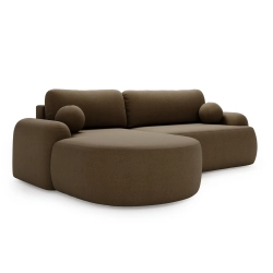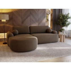 BRĄZOWY NAROŻNIK DO SALONU AGAT L Z PÓŁOKRĄGŁĄ OTOMANĄ LAMBI