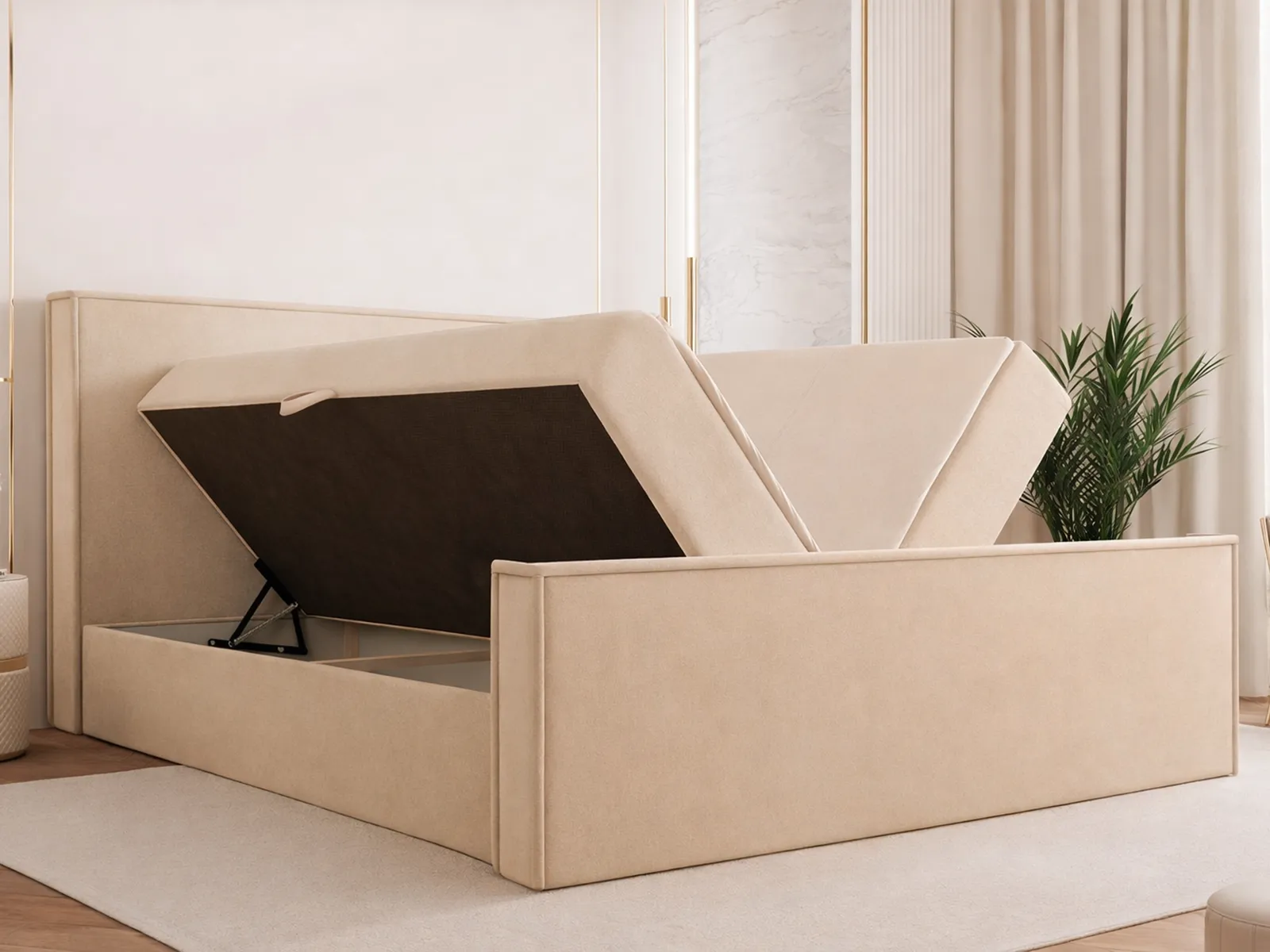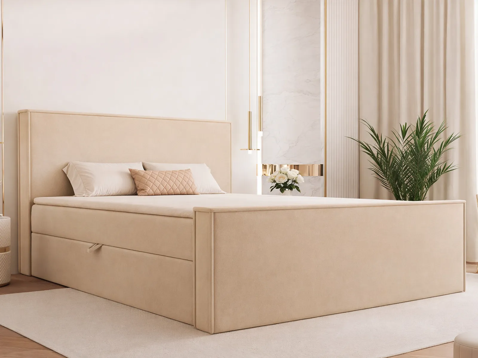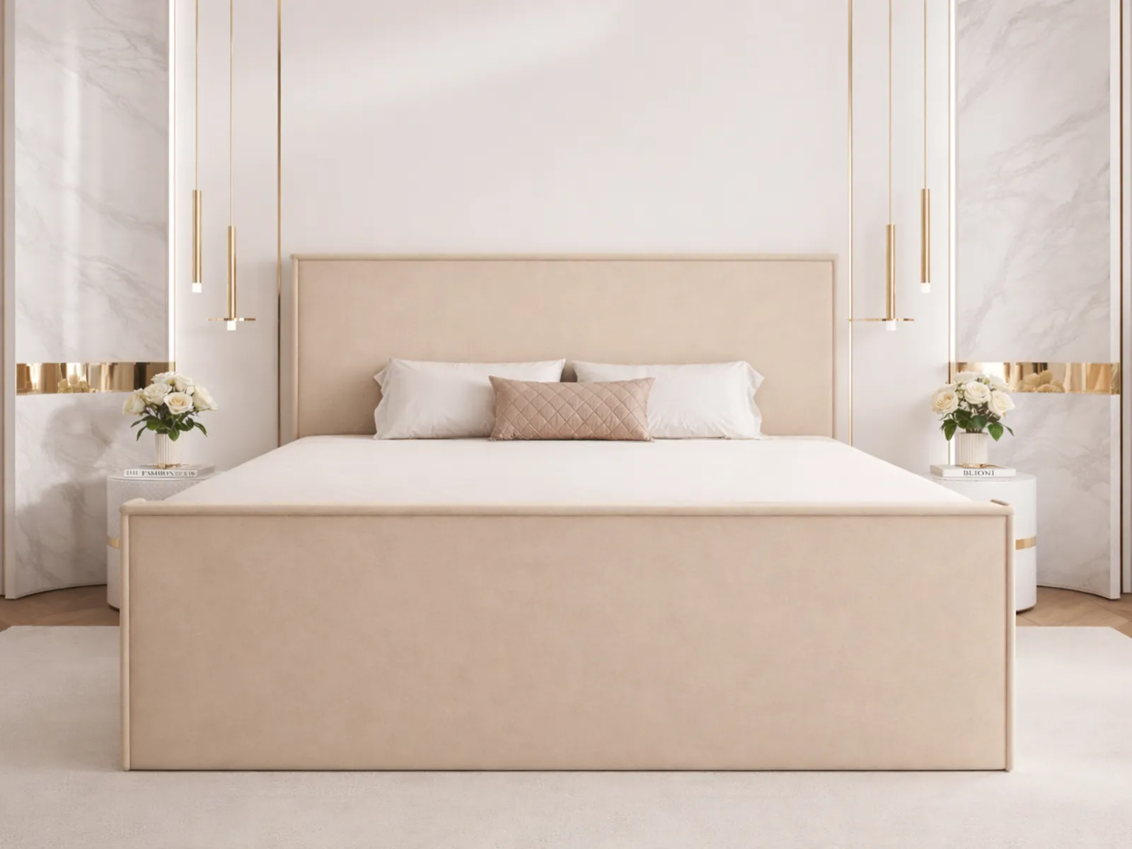 Łóżko Polio to połączenie nowoczesnej elegancji i funkcjonalności, które idealnie sprawdzi się w stylowej sypialni. Charakterystyczne pionowe przeszycia na zagłówku i ramie nadają bryle subtelnej lekkości oraz luksusowego wykończenia. Jasna, neutralna kolorystyka sprawia, że model doskonale komponuje się zarówno z aranżacjami modern classic, glamour, jak i minimalistycznymi wnętrzami.