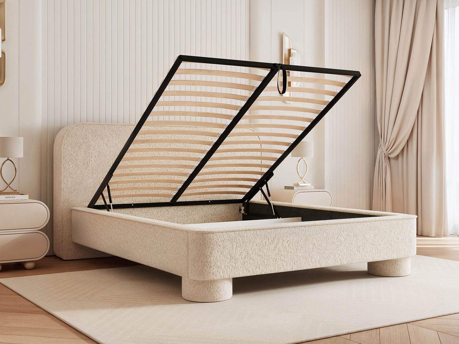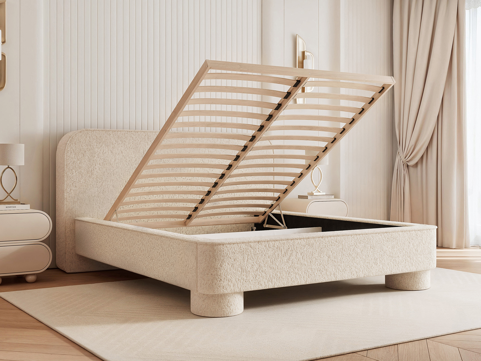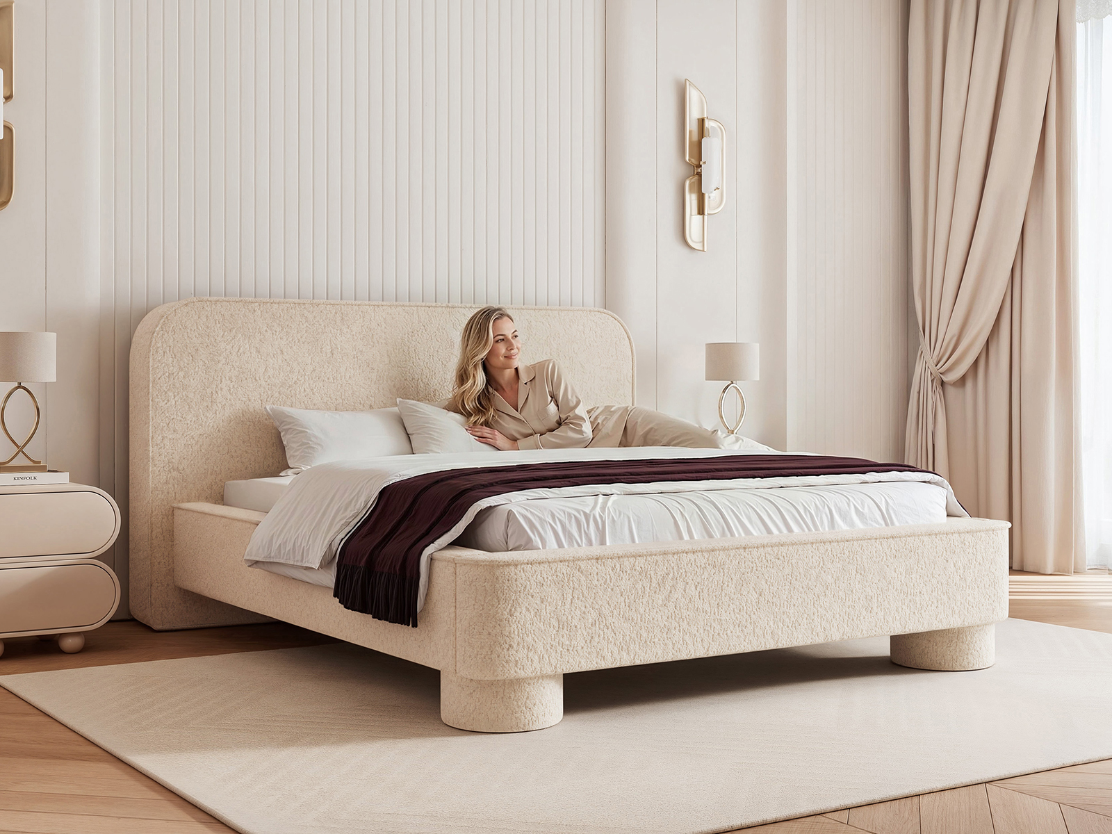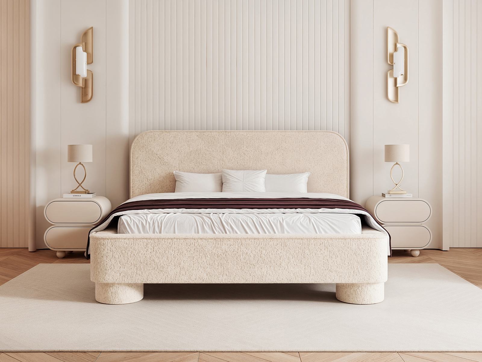 Łóżko NAOMI to połączenie nowoczesnego designu, przytulnej estetyki i wyjątkowego komfortu. Jego miękka, tapicerowana forma w jasnym, kremowym odcieniu wprowadza do sypialni spokój, elegancję i subtelną harmonię. To idealny wybór dla osób, które cenią minimalistyczne wnętrza z nutą luksusu.
