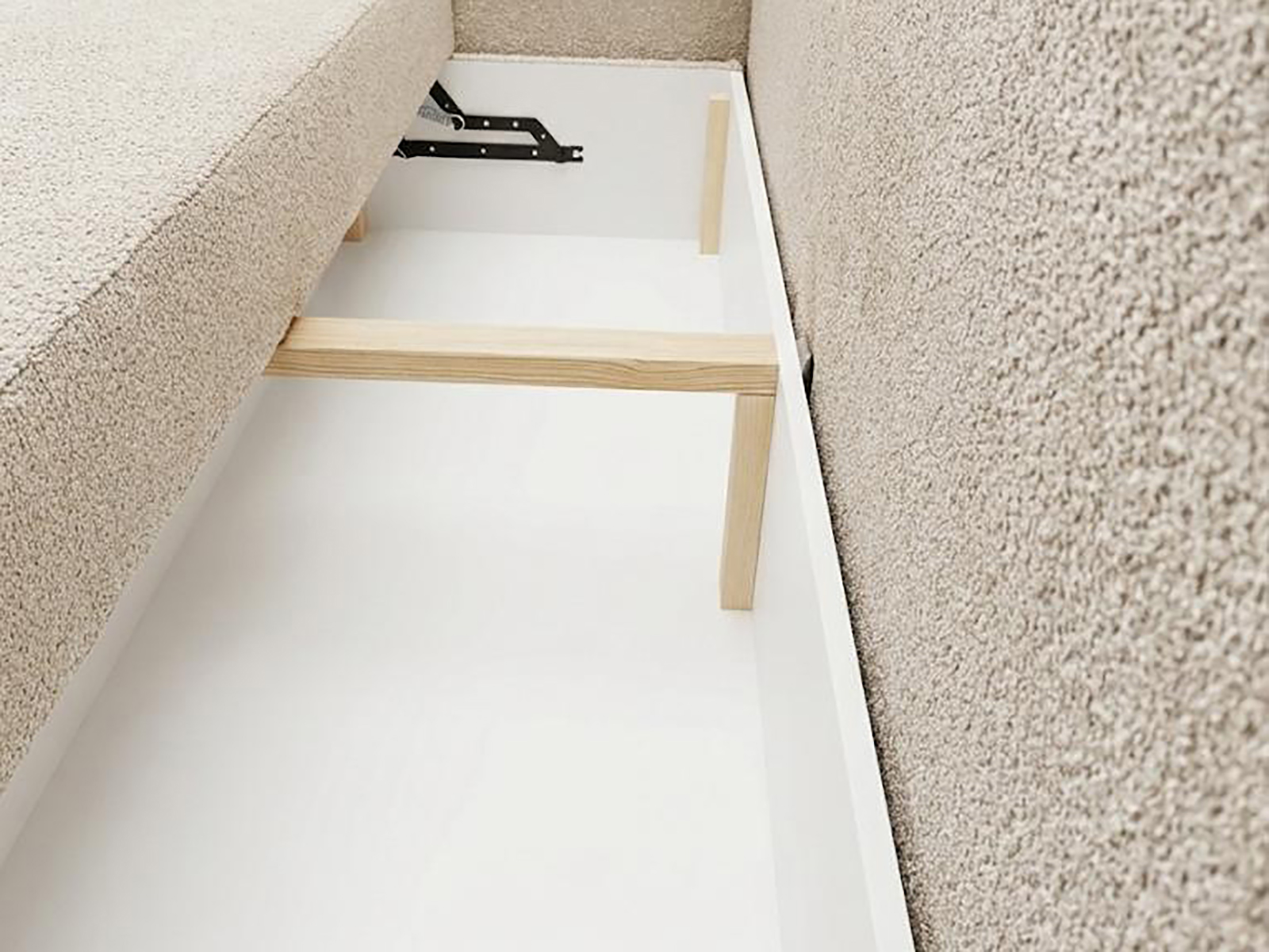 Wewnątrz konstrukcji znajduje się pojemnik na pościel, który zapewnia dodatkowe miejsce do przechowywania tekstyliów lub innych przedmiotów codziennego użytku. Dzięki temu model Malmo sprawdzi się również w przestrzeniach, gdzie liczy się każdy centymetr. Zastosowanie tej funkcji pozwala na zachowanie porządku bez konieczności rezygnacji z estetyki.