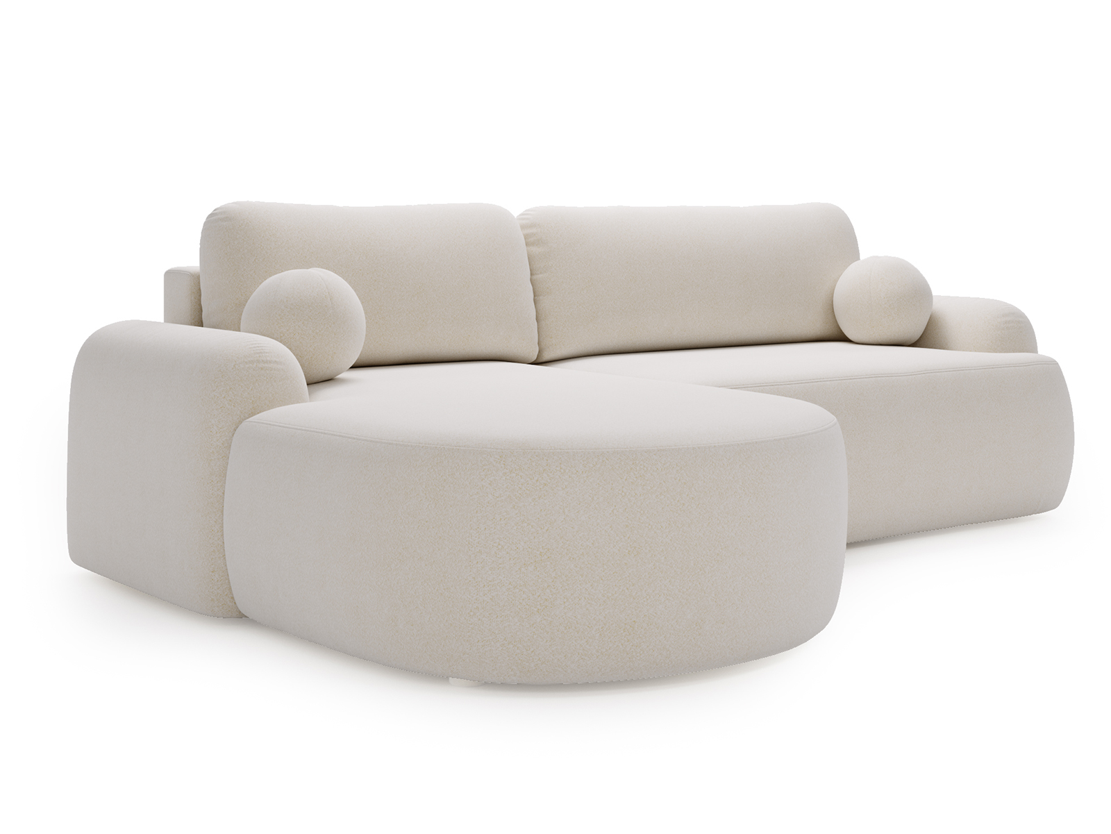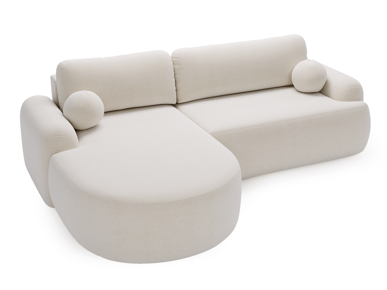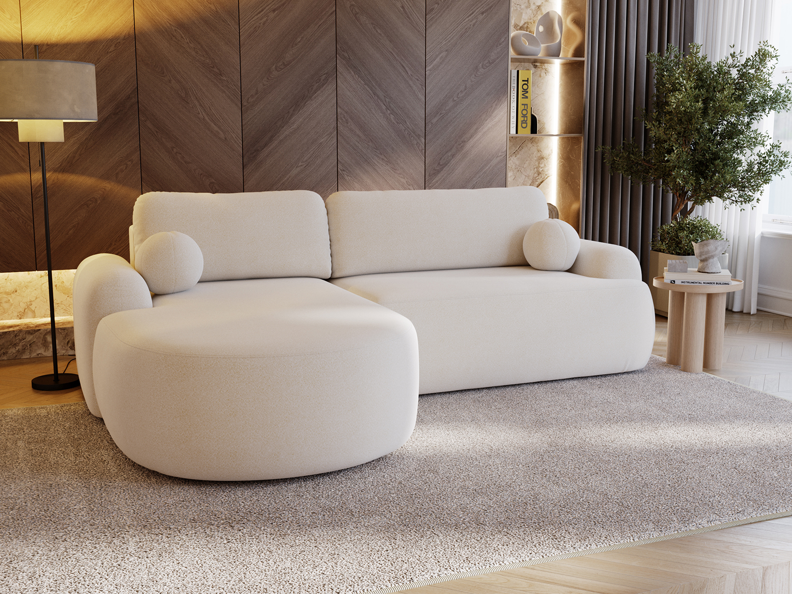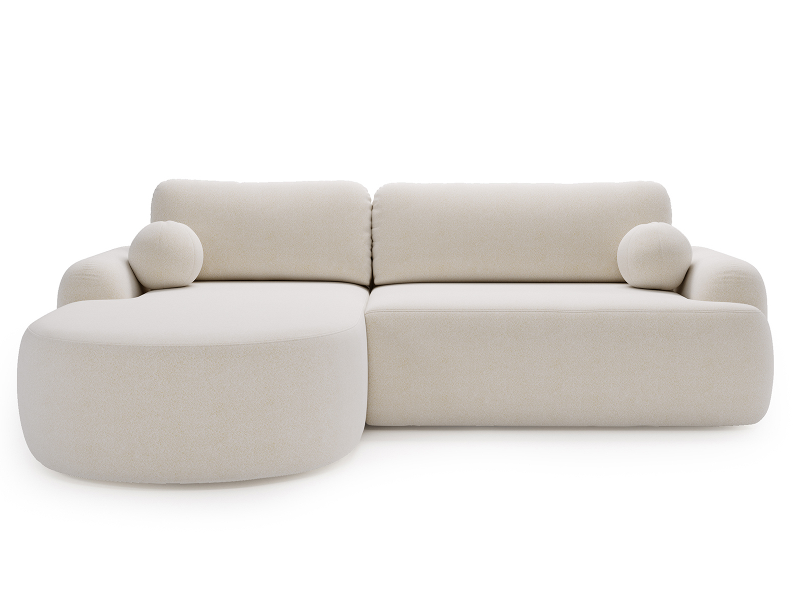 Mebel wykonany w tkaninie Lambi, której pluszowa faktura i dłuższe włosie nadają narożnikowi wyjątkowo przyjemny charakter. Materiał ten jest miękki i otulający w dotyku, dzięki czemu korzystanie z mebla staje się jeszcze bardziej komfortowe. Jego szlachetna struktura dodatkowo podkreśla estetykę narożnika, wprowadzając do wnętrza wrażenie przytulności i ciepła.