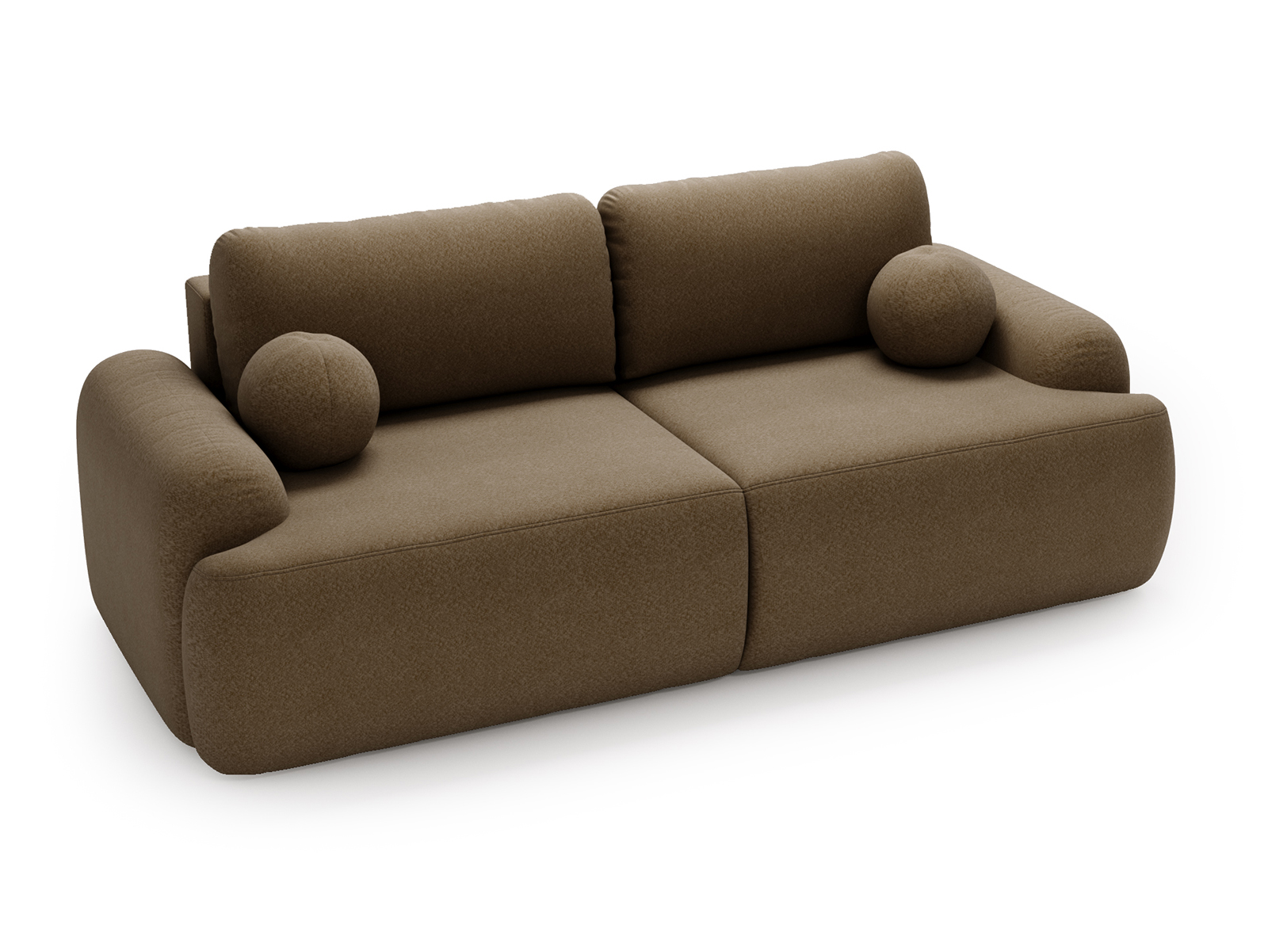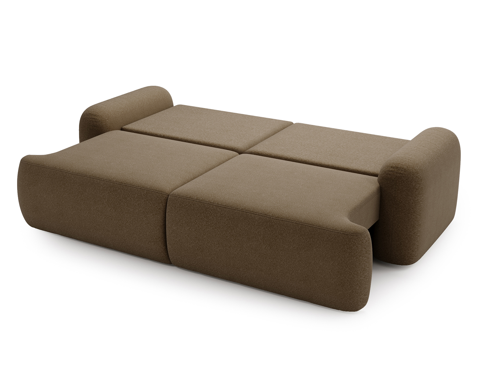 Rozkładanie odbywa się za pomocą mechanizmu DL, w którym siedzisko wysuwa się do przodu, a oparcie składa się, tworząc płaską powierzchnię spania o wymiarach 134 × 200 cm. Taki system pozwala w prosty sposób przekształcić mebel w pełnowymiarowe łóżko. W dolnej części konstrukcji znajduje się schowek na pościel, dyskretnie ukryty, a jednocześnie łatwo dostępny.