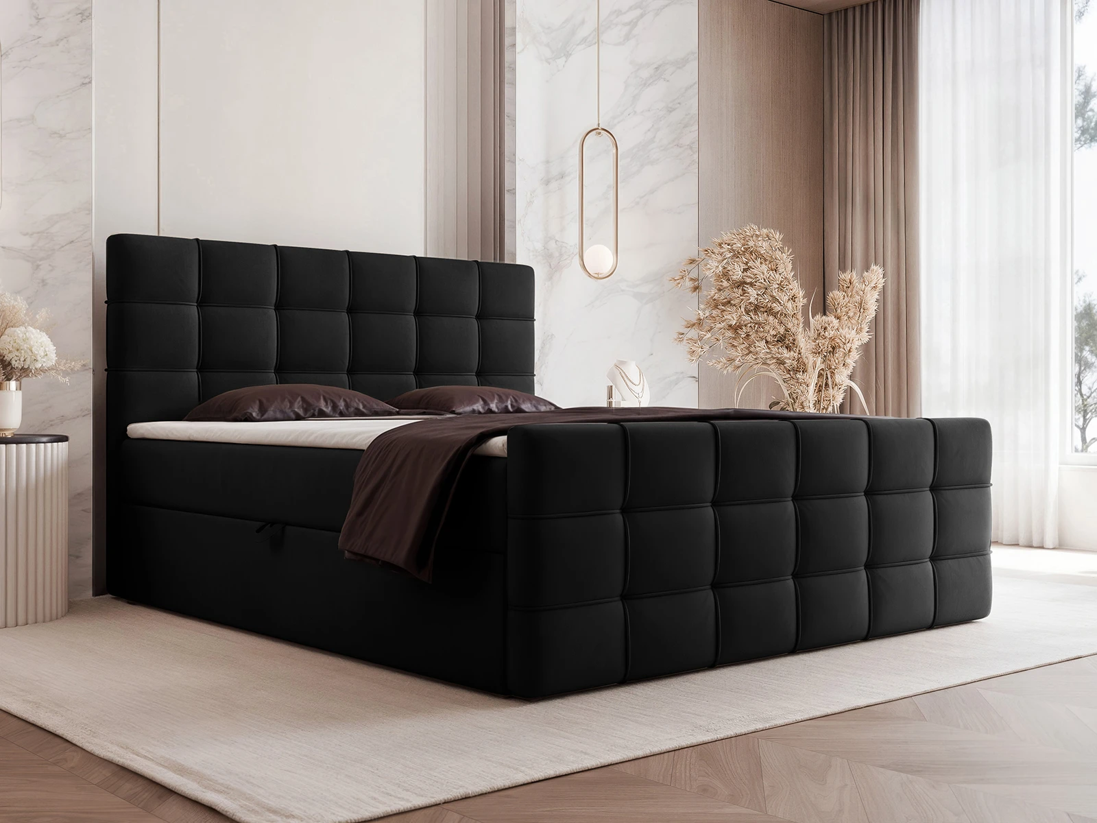 Model PAROS został wyposażony w praktyczny pojemnik na pościel, który pozwala na wygodne przechowywanie kołder, poduszek czy sezonowych tekstyliów. To doskonałe rozwiązanie do sypialni, w których liczy się maksymalne wykorzystanie przestrzeni.