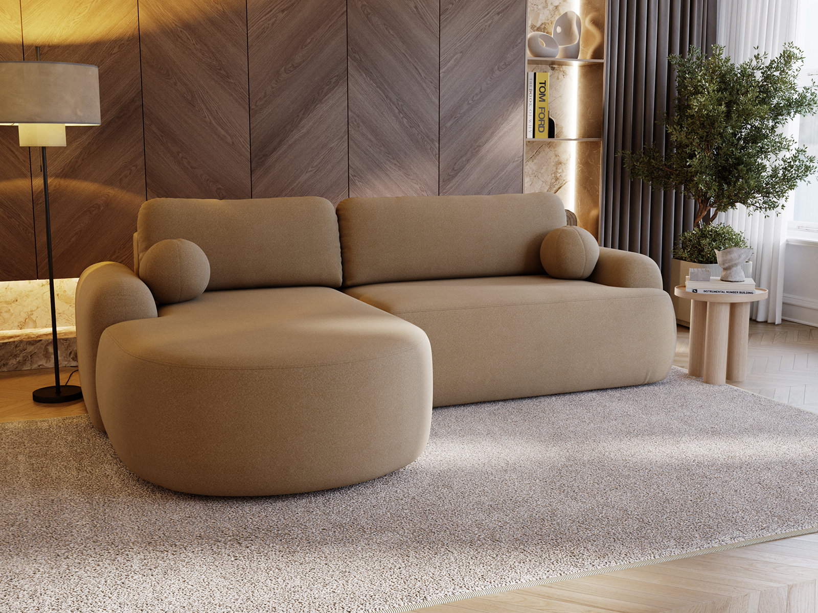 ROZKŁADANY NAROŻNIK DO SALONU W BEŻOWYM KOLORZE AGAT L BOULCE - W ARANŻACJI