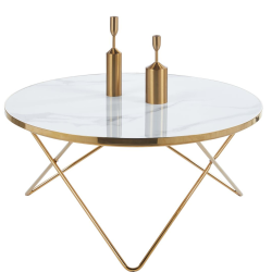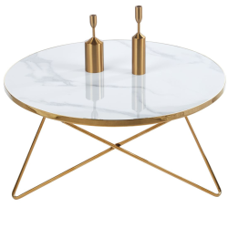 STOLIK KAWOWY Z BIAŁYM BLATEM MARMUROWYM AMOR XL I NOGAMI W KOLORZE ZŁOTA