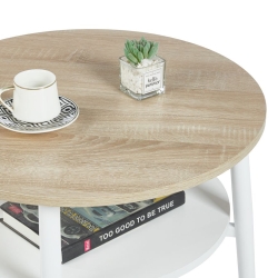 STYLOWY STOLIK OKRĄGŁY DO SALONU SAVA S BLAT DĄB SONOMA NOGI BIAŁE