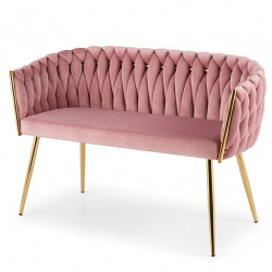 ELEGANCKA SOFA DO SALONU LUB GABINETU ROSE RÓŻOWY VELVET ZŁOTE METALOWE NOGI