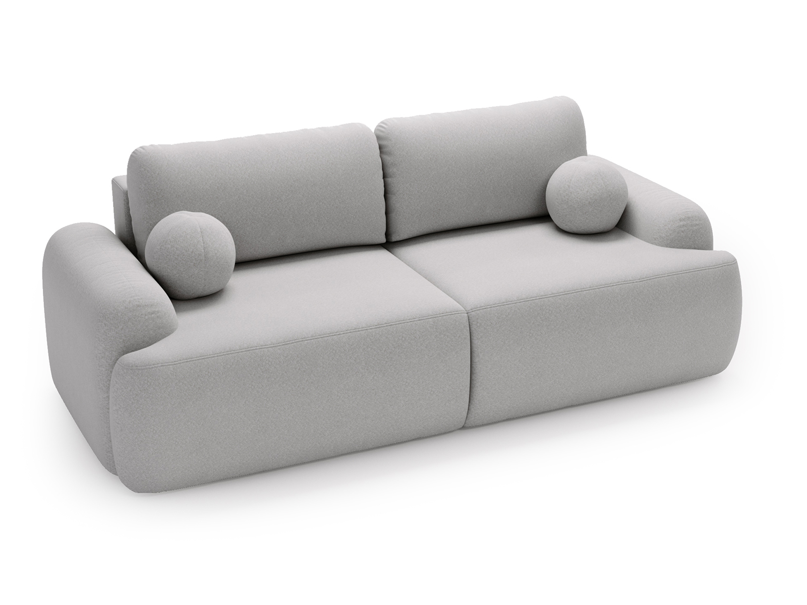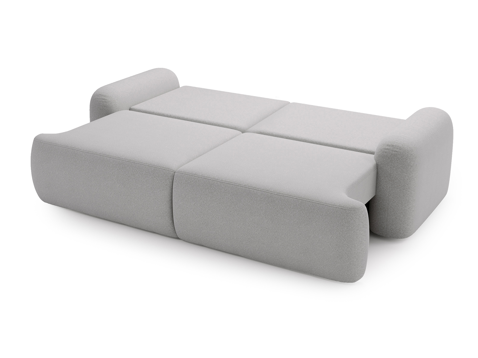 Rozkładanie odbywa się za pomocą mechanizmu DL, w którym siedzisko wysuwa się do przodu, a oparcie składa się, tworząc płaską powierzchnię spania o wymiarach 134 × 200 cm. Taki system pozwala w prosty sposób przekształcić mebel w pełnowymiarowe łóżko. W dolnej części konstrukcji znajduje się schowek na pościel, dyskretnie ukryty, a jednocześnie łatwo dostępny.