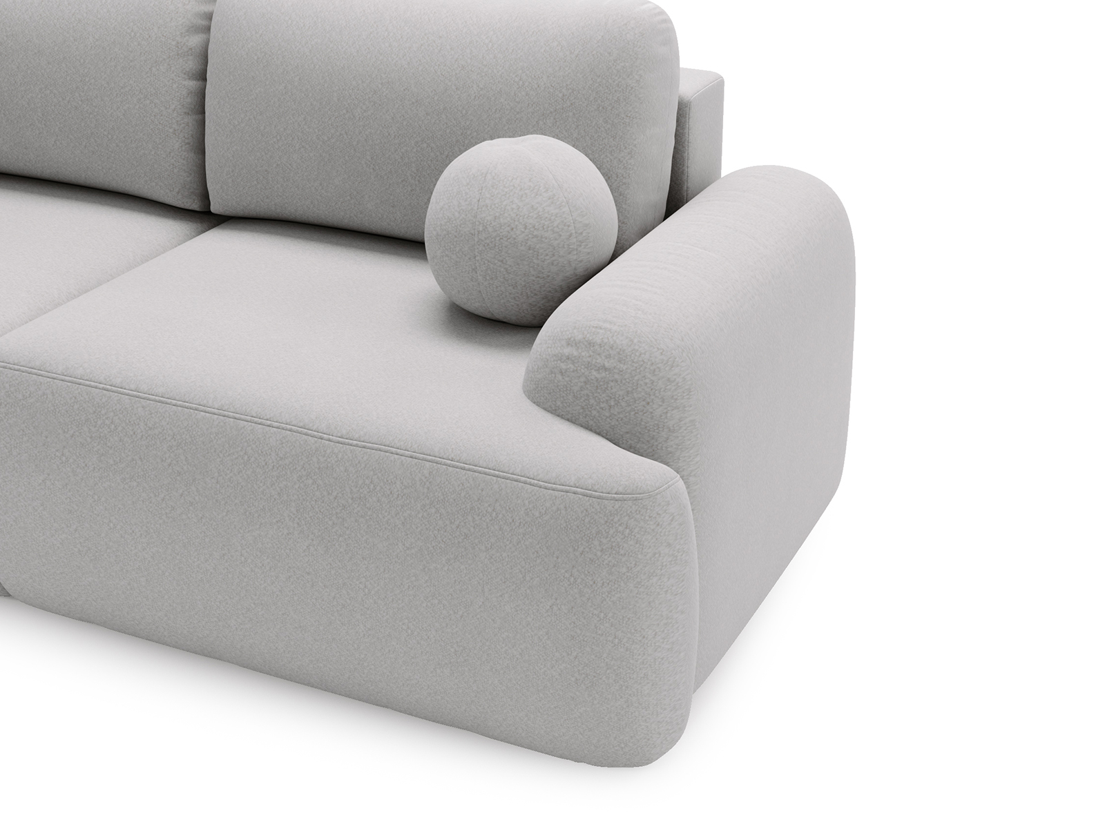 Wnętrze siedziska wypełnia sprężyna falista oraz pianka T30, znana z dużej sprężystości i trwałości, co sprzyja zachowaniu kształtu na długie lata. Poduszki oparciowe wypełniono miękkim silikonem, dzięki czemu dobrze podtrzymują plecy i dopasowują się do sylwetki. Zastosowane materiały wpływają na odczuwalny komfort zarówno podczas siedzenia, jak i w trakcie snu.